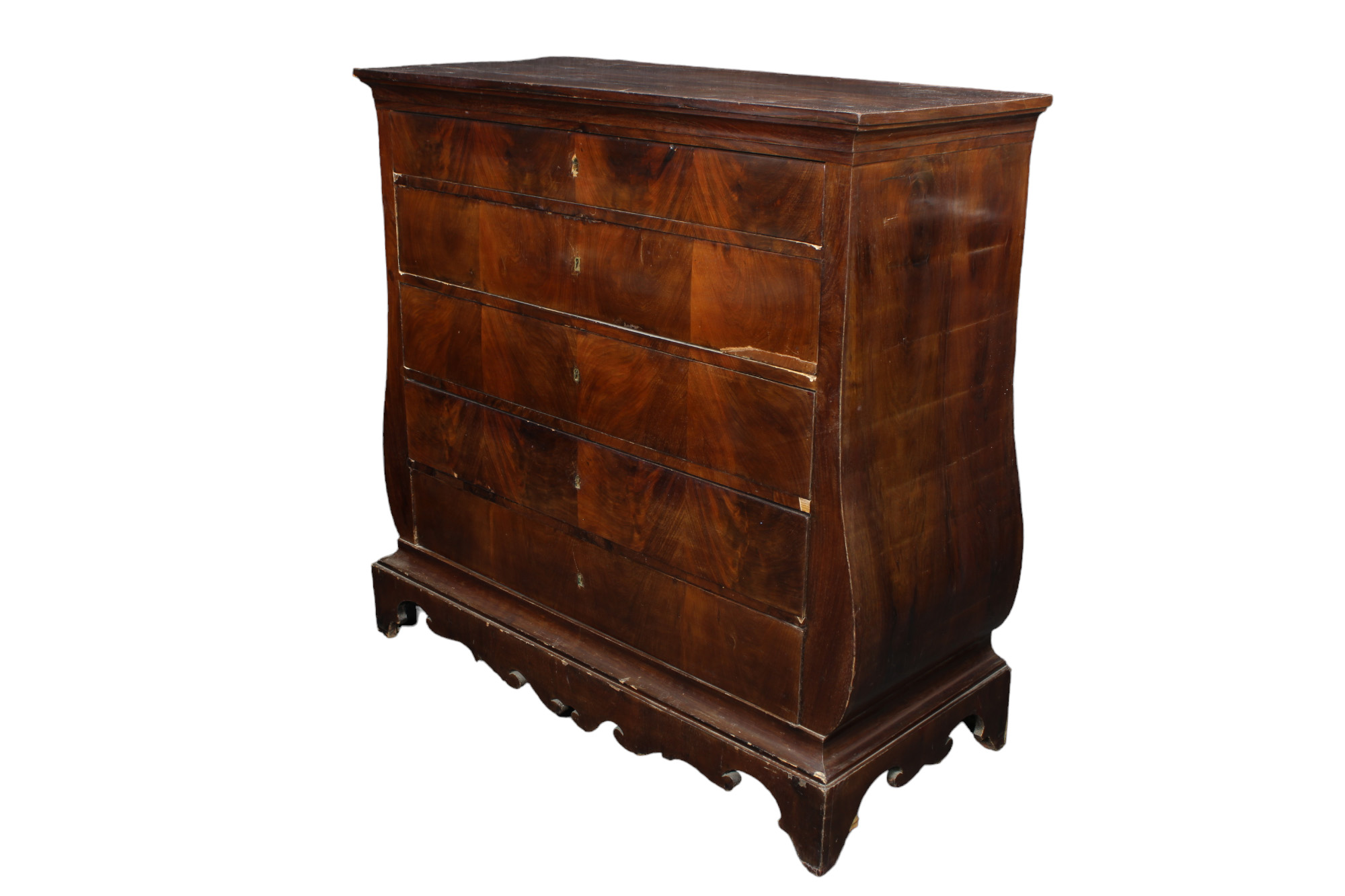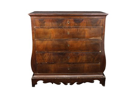 RARO CASSETTONE A CHITARRA in piuma di mogano a 5 cassetti ebanisteria siciliana 1830-1840 circa h cm 128 x 127 x 50