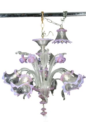 LAMPADARIO A 5 BRACCI in vetro di Murano Venezia primi 900 h cm 67 x 75