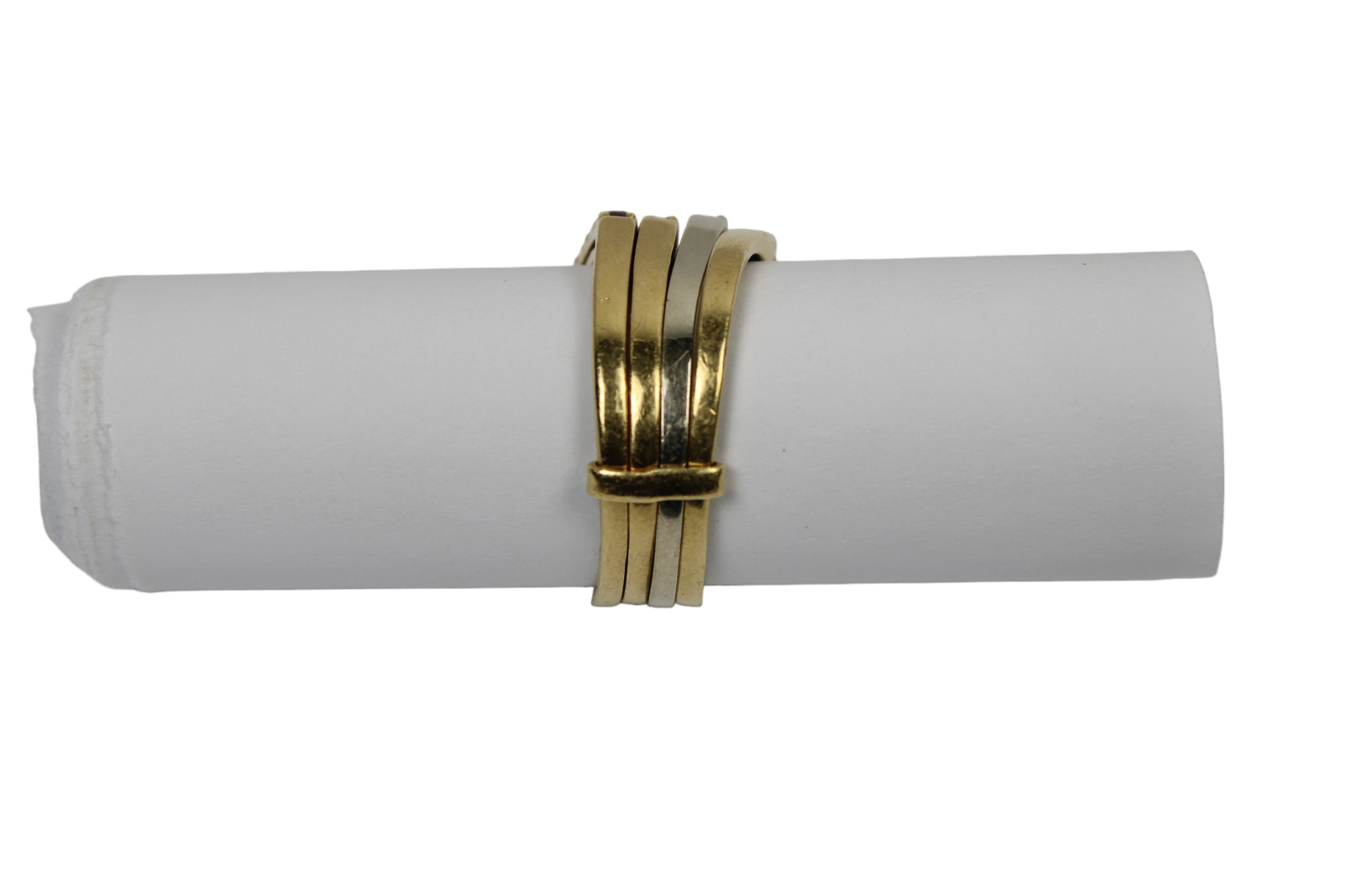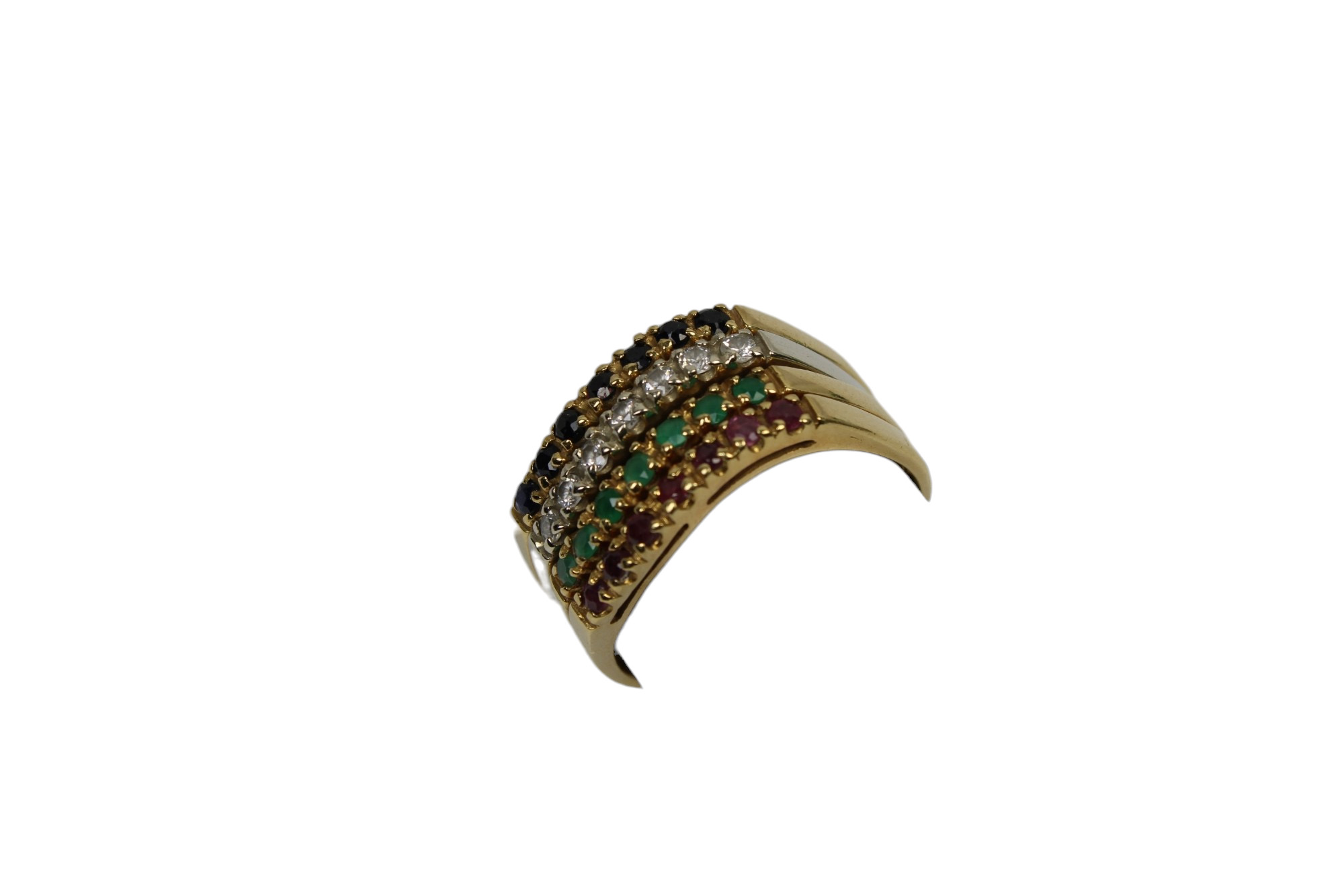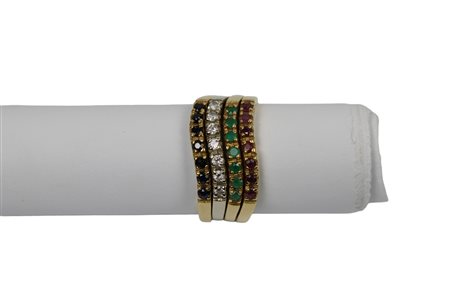 ANELLO MULTIFILO in oro a 3 fasce con pietre pregiate di diverso genere grammi 11 Italia anni 80