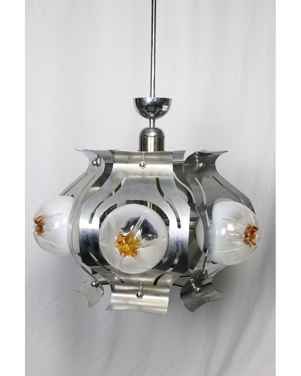 2 LAMPADARI in metallo e vetro vintage Italiano XX secolo h cm 103 x 73