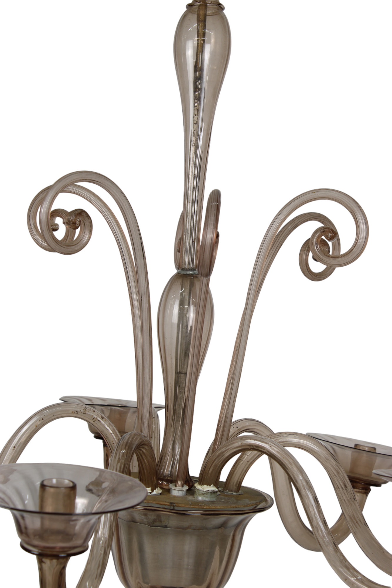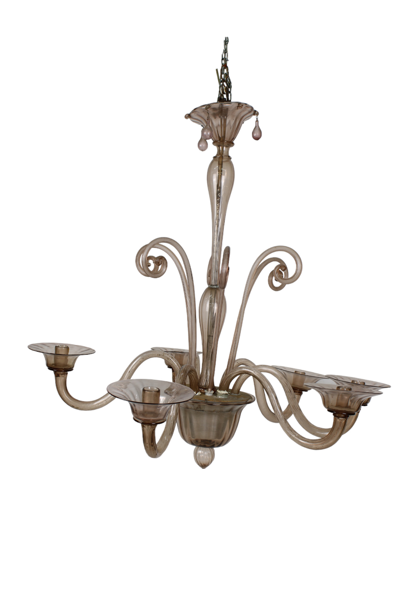 LAMPADARIO A 6 BRACCI in vetro di Murano attribuibile a Venini Venezia prima meta del 900 h cm 100 x 94