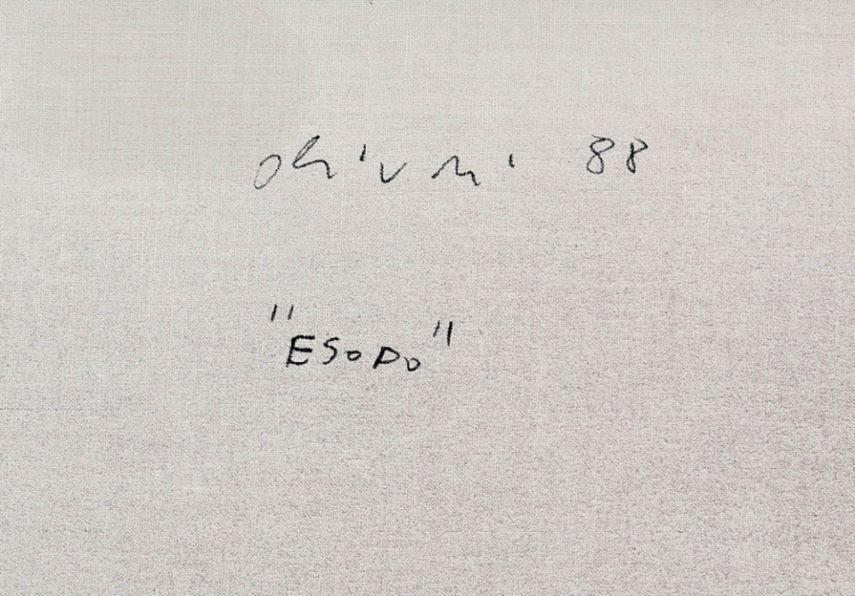 CLAUDIO OLIVIERI 1934 " Esopo ", 1988 Tecnica mista su tela, cm. 50 x 65 Firmato e datato sul retro Autentica dell'artista su fotografia Prov. Collezione Privata