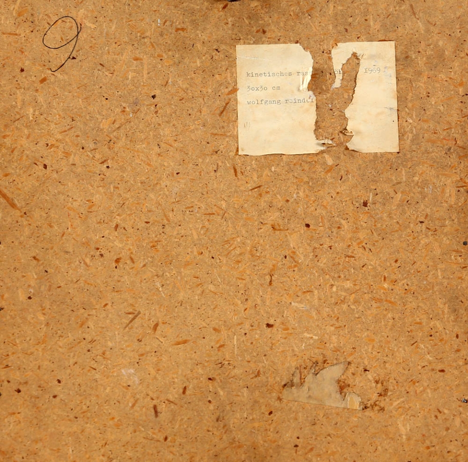 WOLFGANG REINDEL 1935 - 2011 " Kinetisches ... ", 1969 Assemblaggio, plastica colorata, garze, plexiglass in box, cm 30 x 30 x 4,5 Firmato e datato sul retro Prov. Collezione Privata