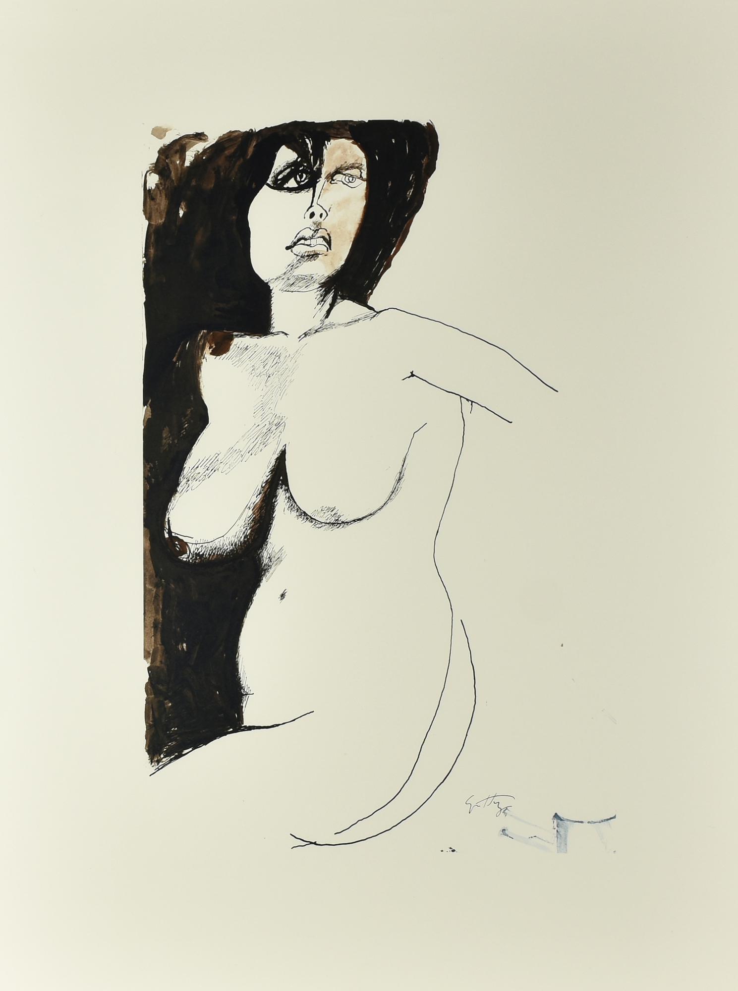 Renato Guttuso FIGURA NUDA fotolitografia su carta raffigurante il disegno...