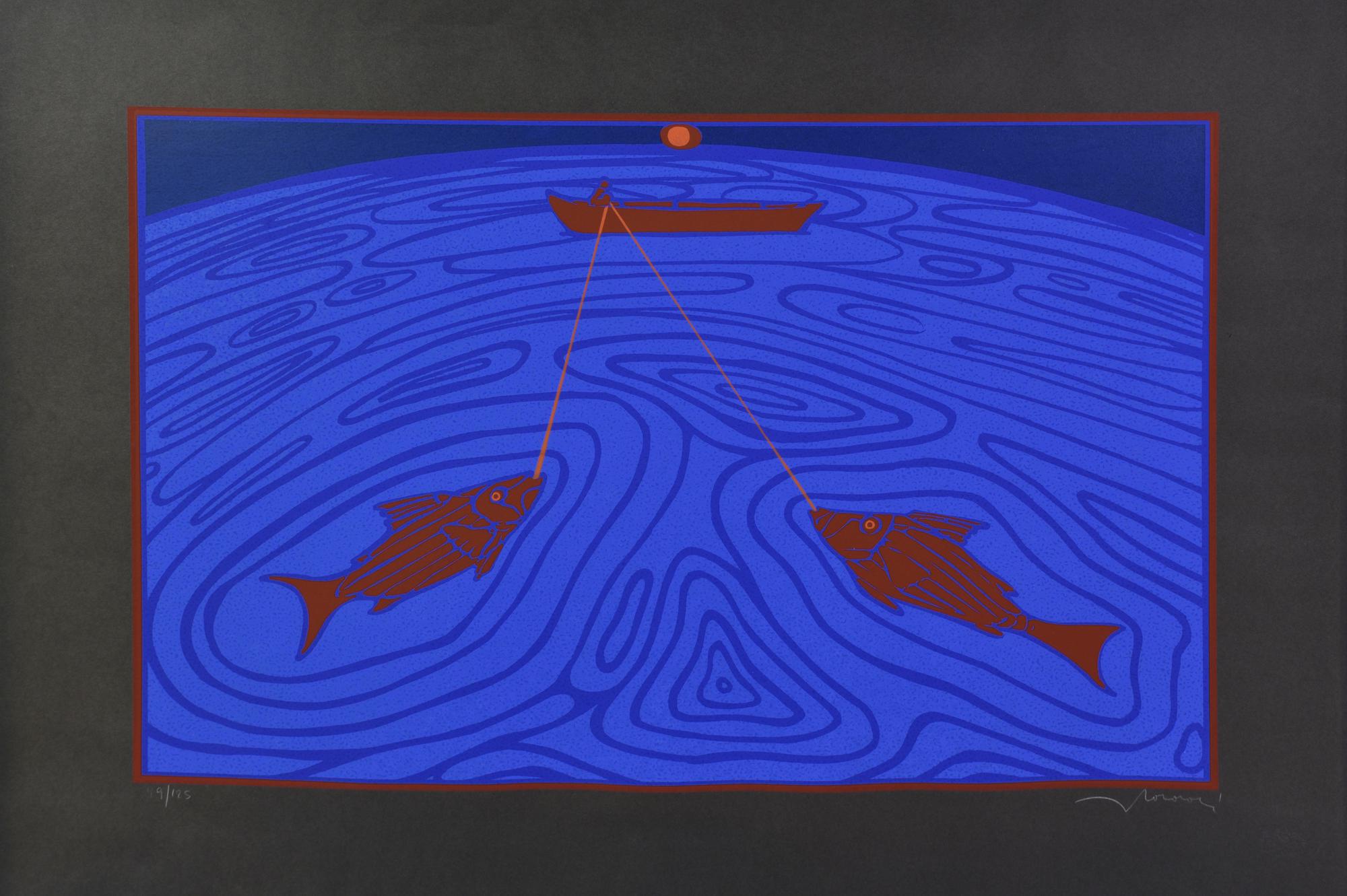 Francesco Casorati LA PESCA serigrafia su carta, cm 50x70; es. 99/125 firma e...