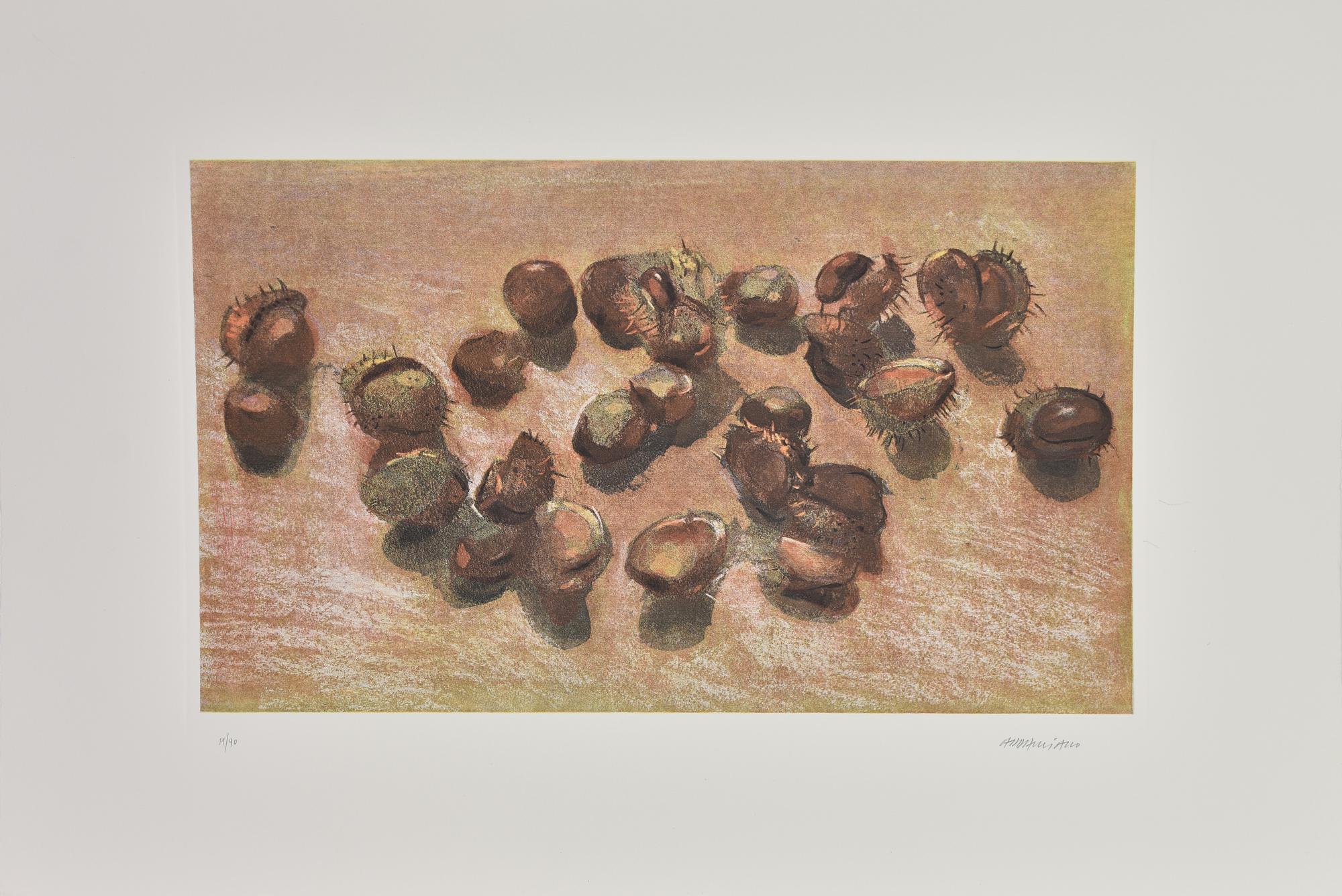 Natale Addamiano CASTAGNE incisione su carta, cm 31x49, su foglio 50x70; es....