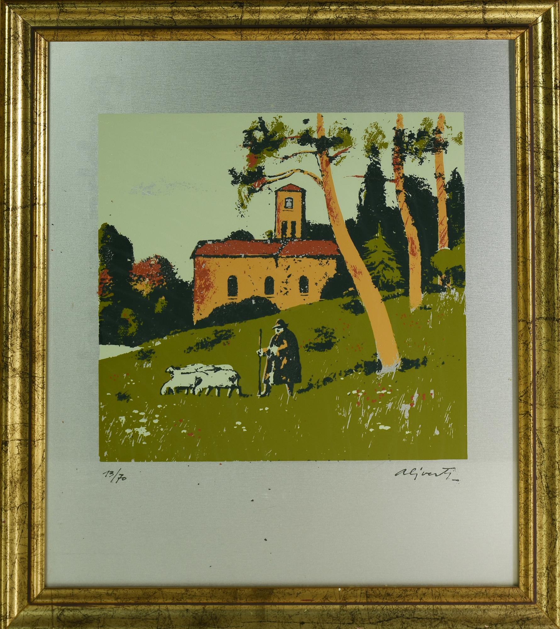 Cesare Aliverti PASTORE multiplo su carta argentata, cm 40x35; es. 13/70...