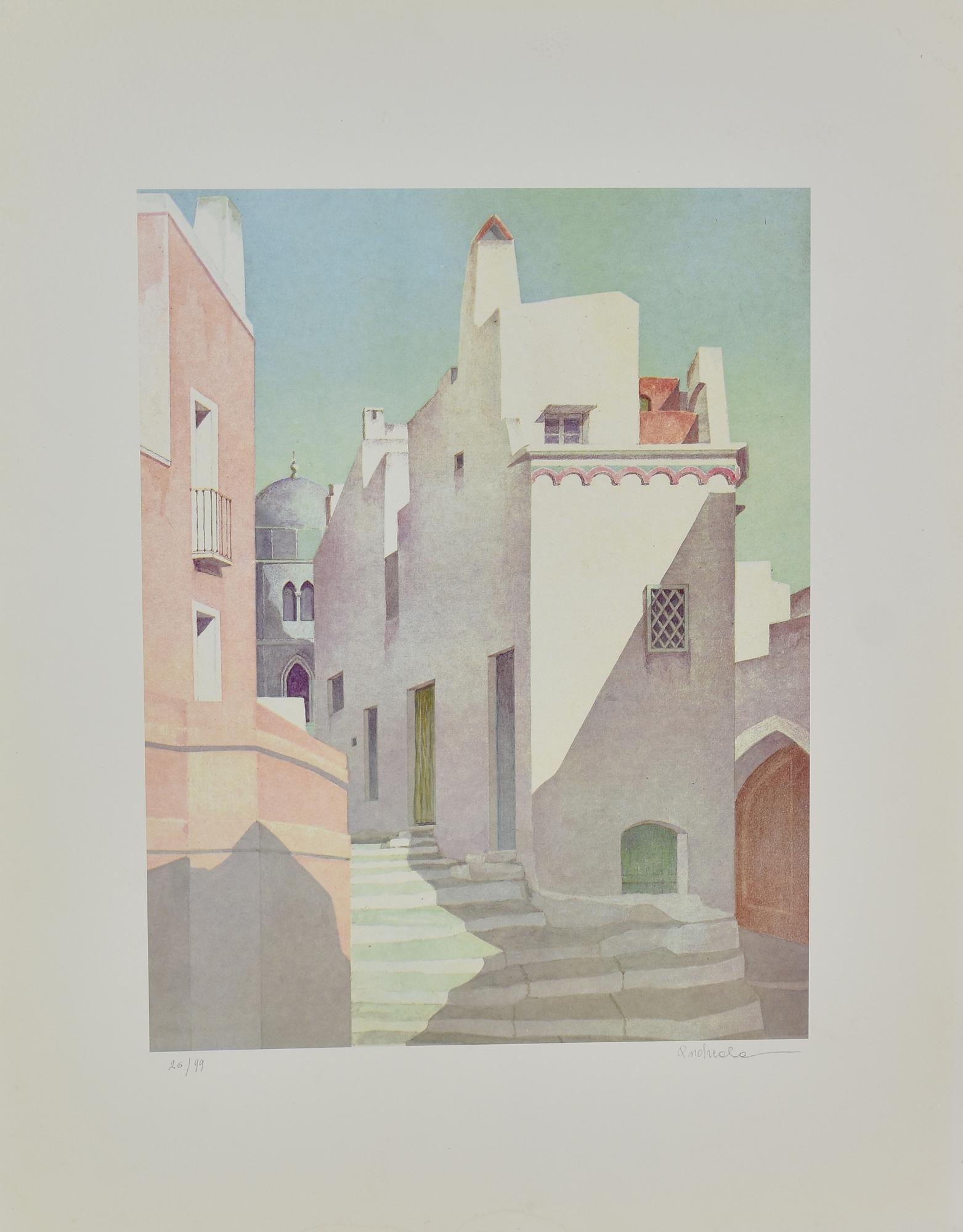 Aldo Andreolo VICOLI fotolitografia su carta, cm 70x50; es. 26/99 firma e...
