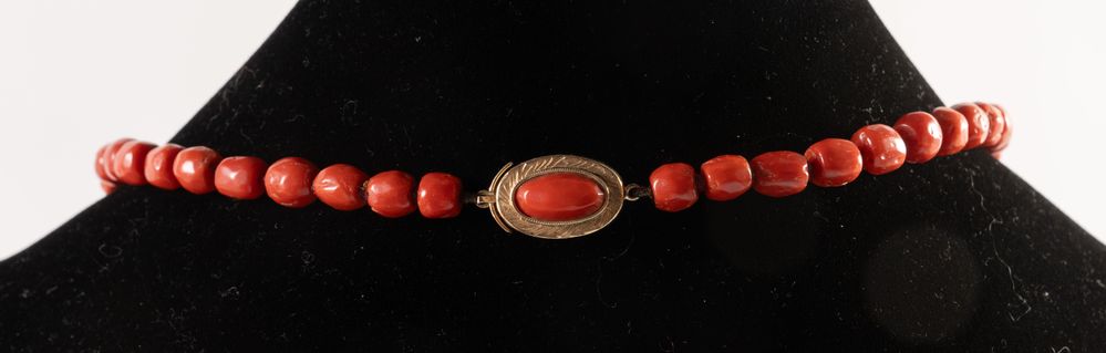 COLLANA DI CORALLO ROSSO CON FERMEZZA IN ORO GIALLO E CORALLO Collana...