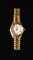 Orologio marca Longines con cassa e bracciale in oro giallo 18k con numeri romani, datario e movimento al quarzo.
