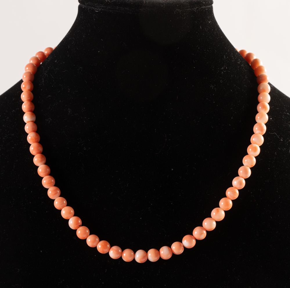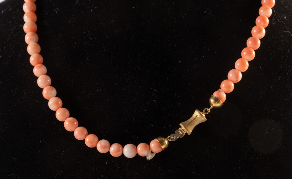 COLLANA DI CORALLO ROSA CON FERMEZZA IN ORO Collana di corallo rosa con sfere...