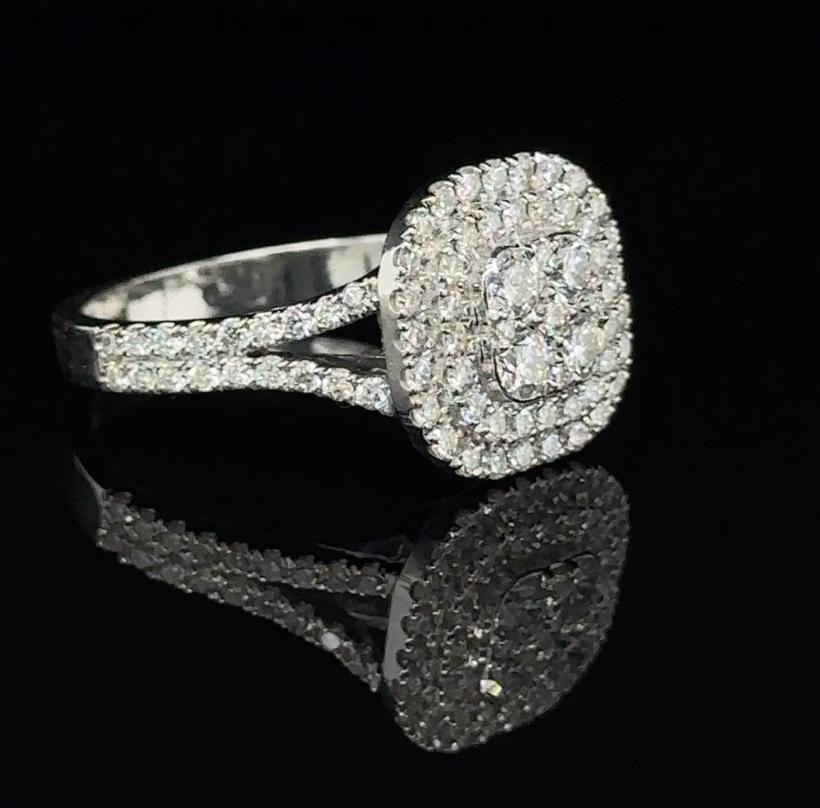 ANELLO IN ORO BIANCO 14K - 4.340 GR CON DIAMANTI COLORE E-F PUREZZA VS1-VS2 1-1.50 CT TAGLIA 7 CERTIFICATO GEMMOLOGICO MAROZ DIAMONDS LTD MEMBRO ISRAEL DIAMOND EXCHANGE - DJ31201
