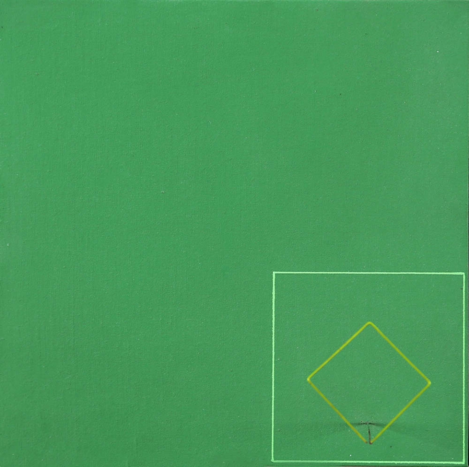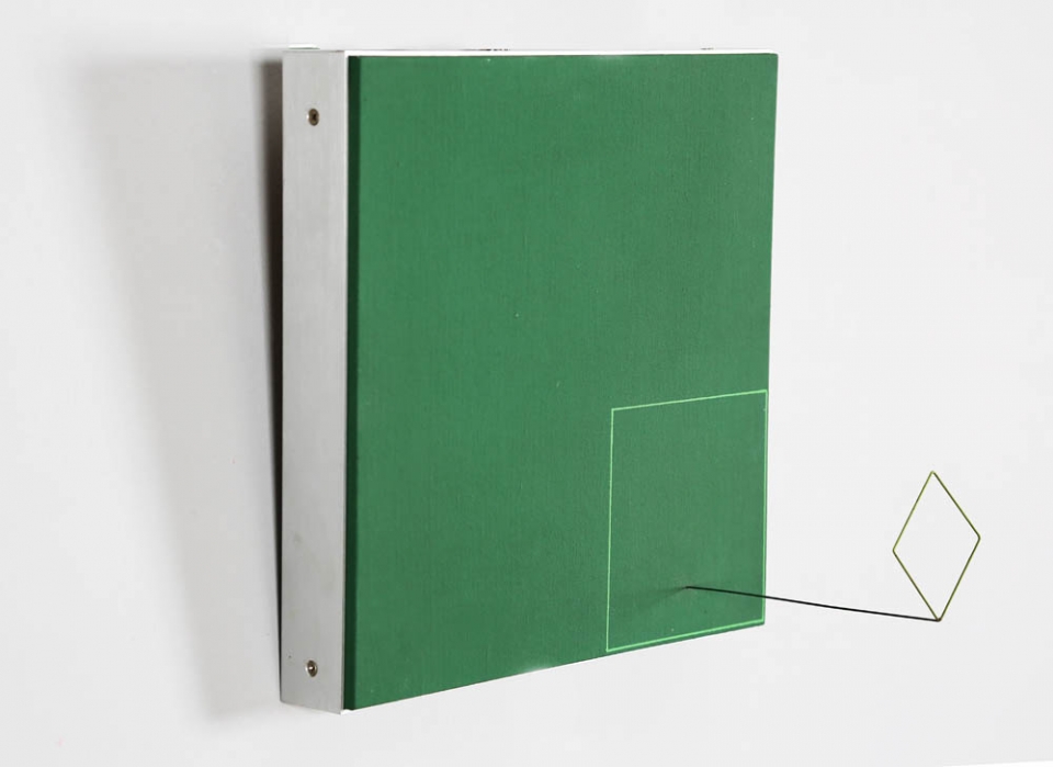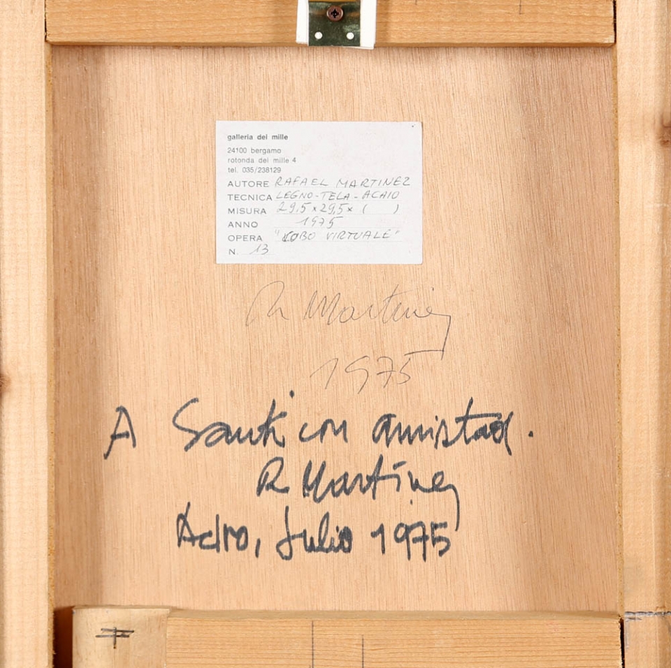 RAFAEL MARTINEZ 1940 " Cubo virtuale ", 1975 Acrilico e rilievo su tela su tavola, cm. 29,5 x 29,5 x 15 Firmato e datato sul retro Dedica dell'artista sul retro Etichetta Galleria dei Mille Bergamo, sul retro Prov. Collezione Privata