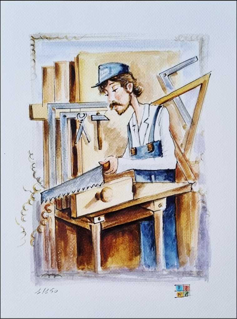 FENA Lecce 1958 "Senza titolo" Serigrafia su cartoncino pesante, ritoccata a mano, cm 24x32. Firmata a penna in basso a destra, tiratura a matita 1/150, a sinistra.