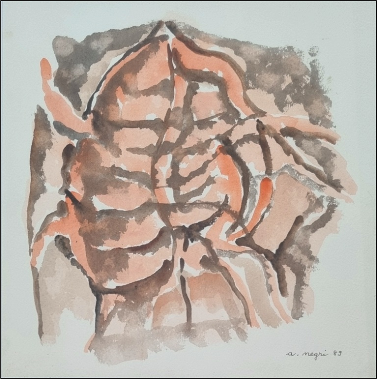 NEGRI ALDA Italia XX sec. - XXI sec. "Senza titolo" Tecnica mista e acquerelli su cartoncino cm 32x32 del 1989. Firmata e datata sul fronte in basso a destra.