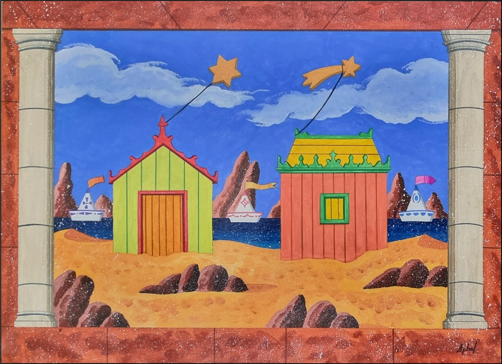 APHEL FABIO Cavalese (TN) 1957 "Marina" Olio su tavola cm 70x50. Firmato sul fronte in basso a destra, sul retro titolo, firma e dimensioni.