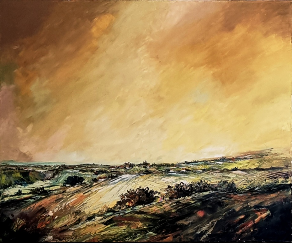 DE ANGELIS A. Italia XX sec. "Paesaggio" Olio su tela cm 120x100 del 2003. Firmato sul fronte in basso a destra. Sul retro titolo, tecnica, misure, data, firma e dedica.