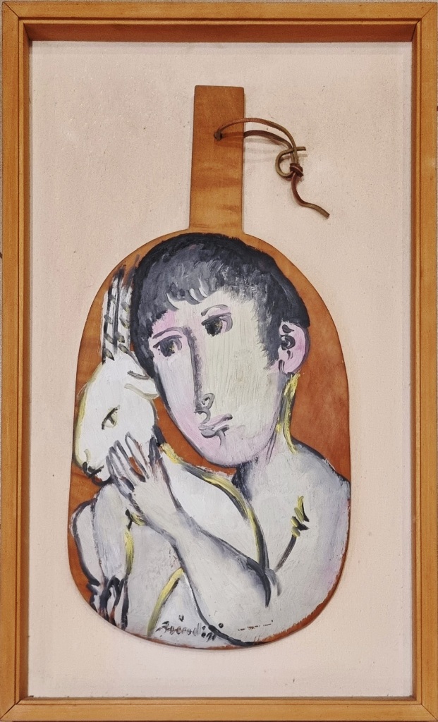 BRINDISI REMO Roma 1918 - Lido di Spina 1996 "Pastore" Olio su tavola cm 28x56, del 1994. Firmato sul fronte in basso a destra. Autentica su foto a cura di Graziani, foto del maestro con l'opera.