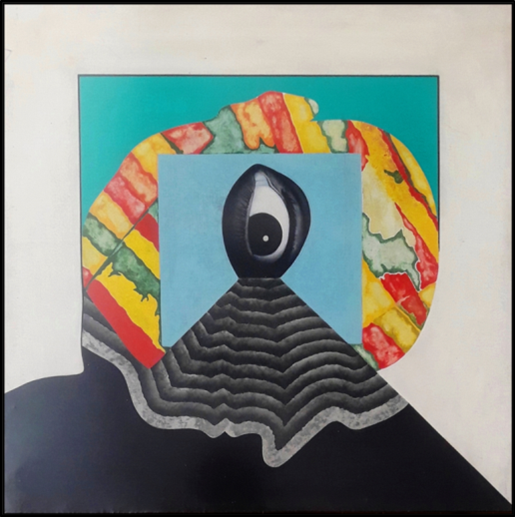 CAGNONE ANGELO Carcare 1941 "L'uomo interno esterno" Tecnica mista su tela cm 40x40 del 1971. Sul retro titolo, firma e data. Autentica su foto.