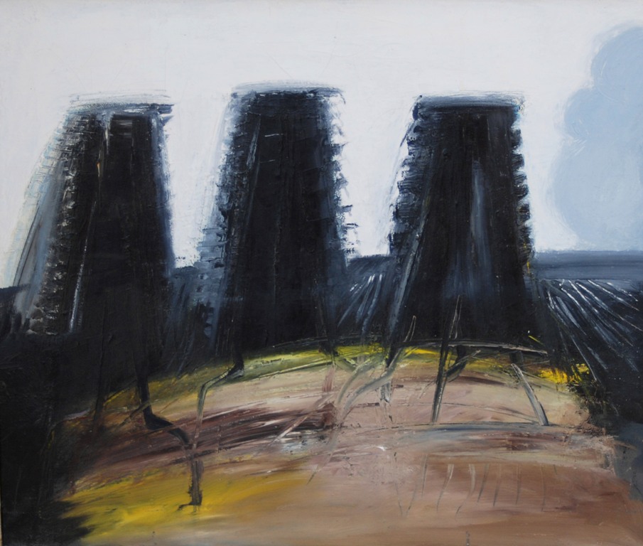 VAGLIERI TINO Trieste 1929 - Cremona 2000 "Paesaggio con palazzi" Olio su tela cm 60x50. Firmato sul fronte in basso a sinistra. Intitolato e firmato al verso.