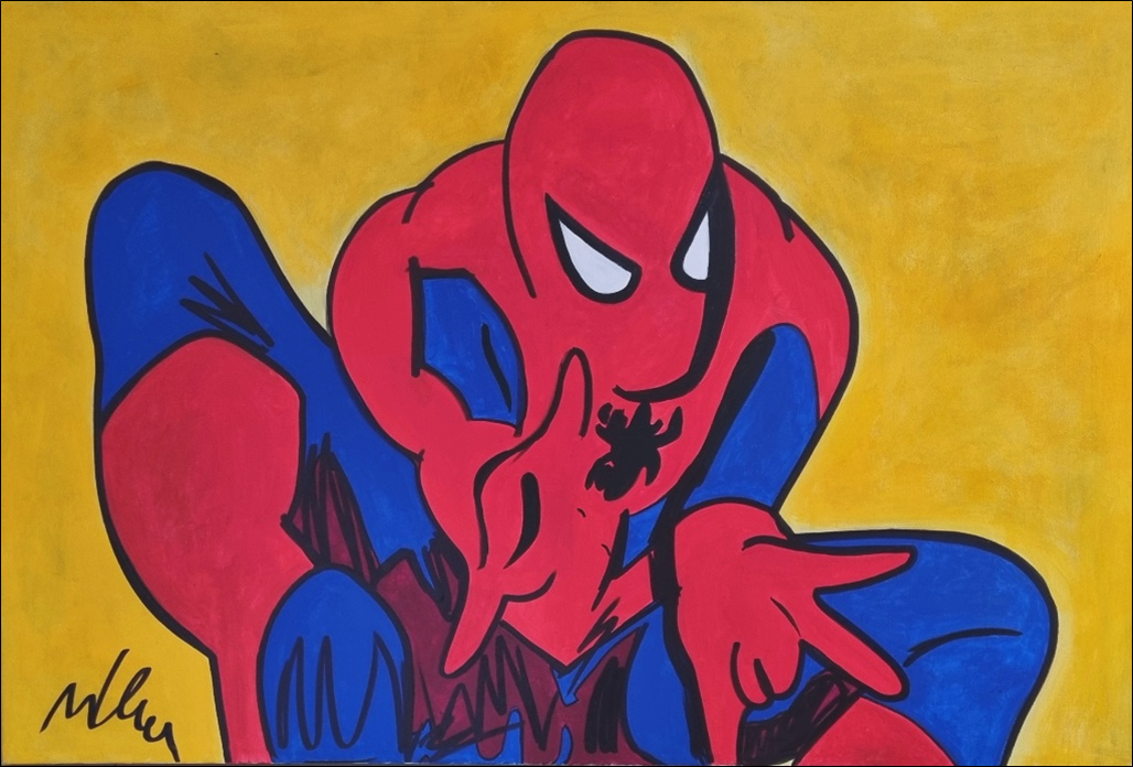 LODOLA MARCO Dorno 1955 "Spider Man" Acrilici e smalti su tela cm 150x100 del 2018. Firmata sul fronte in basso a sinistra e sul retro. Opera archiviata e pubblicata sul Catalogo Generale a pag. 189. Autentica su foto a cura dell'artista.