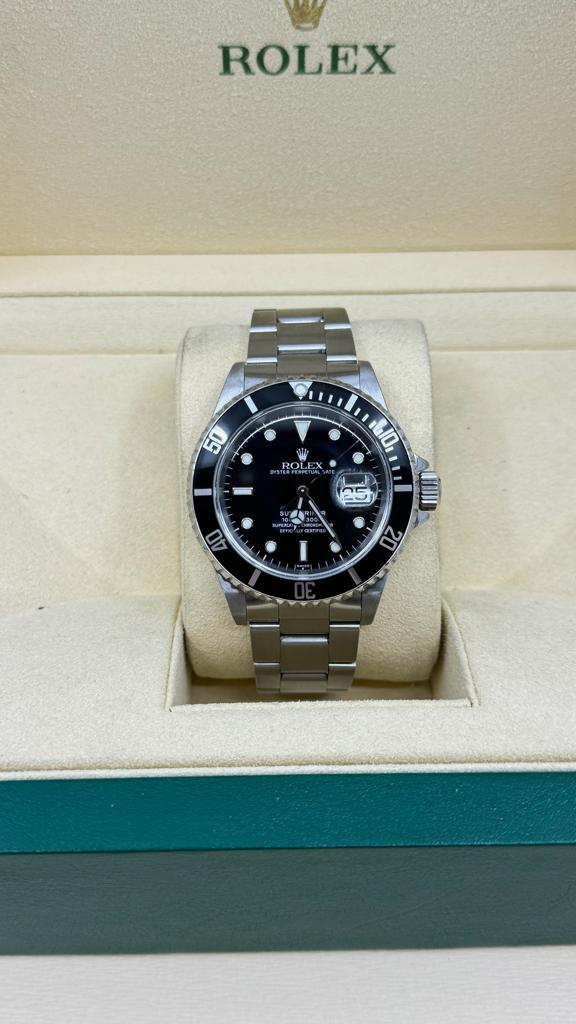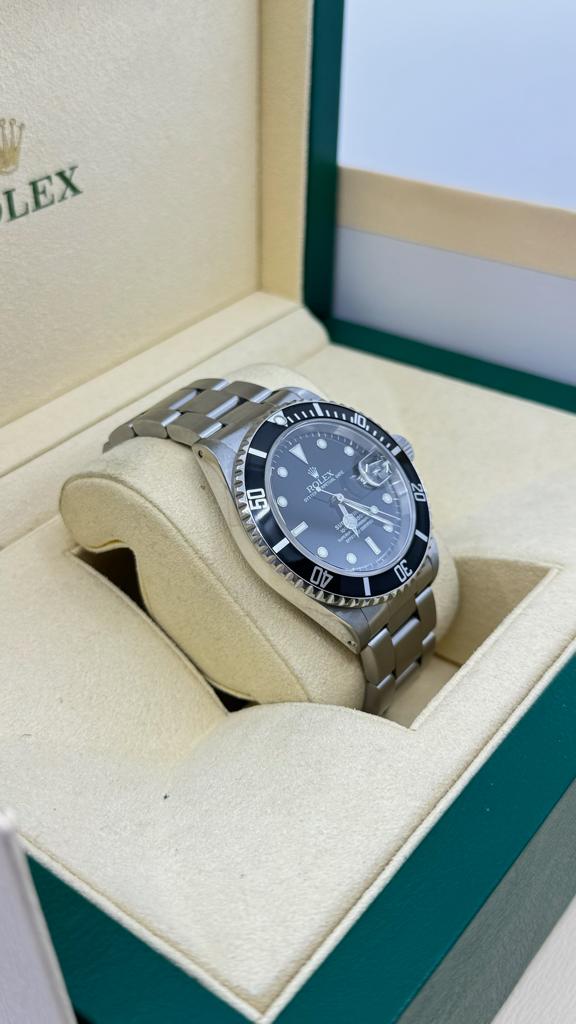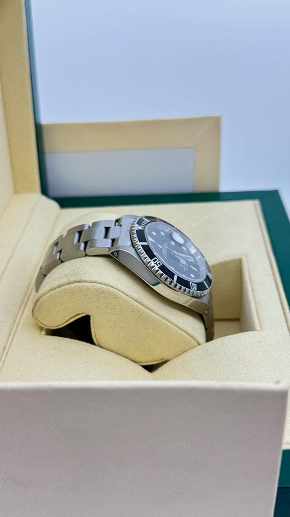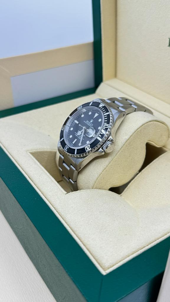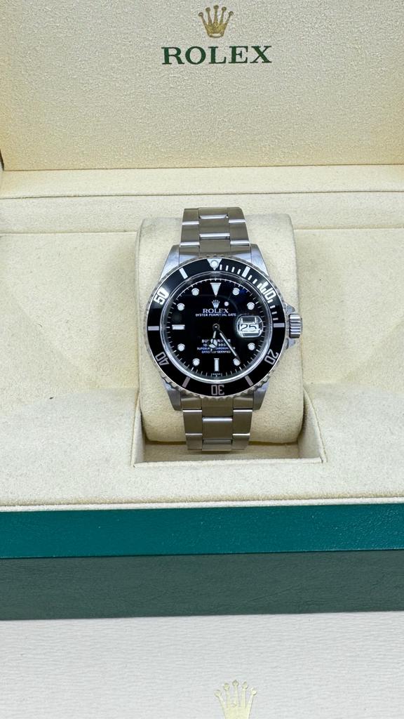 MARCA ROLEX MODELLO (OROLOGIO) SUBMARINER DATE NUMERO DI REFERENZA 16610 CARICA AUTOMATICO MATERIALE DELLA CASSA ACCIAIO MATERIALE CINTURINO ACCIAIO ANNI 98/99 CONDIZIONE OTTIMO (DI SECONDA MANO, SEGNI DI USURA ASSENTI O APPENA VISIBILI) CORREDO DOCUMENTI ORIGINALI CARICA AUTOMATICO CASSA MATERIALE DELLA CASSA ACCIAIO DIAMETRO 40 MM IMPERMEABILE 30 ATM MATERIALE LUNETTA ACCIAIO VETRO ZAFFIRO QUADRANTE NERO NUMERI SUL QUADRANTE SENZA NUMERI MATERIALE CINTURINO ACCIAIO COLORE CINTURINO ACCIAIO CHIUSURA DÉPLOYANTE MATERIALE CHIUSURA ACCIAIO FUNZIONI DATA NO BOX