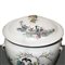 Zuppiera in porcellana bianca cinese dipinta a mano con decorazione di donne e bambini in giardino fiorito scritte in caratteri cinesi. H cm 18.5x18.8 Quattro piccoli manici. Coperchio decorato e con pomello. Timbro con caratteri cinesi e timbro in cera lacca sul fondo.Quattro piccoli manici. Coperchio decorato e con pomello. Timbro con caratteri cinesi e timbro in cera lacca sul fondo.