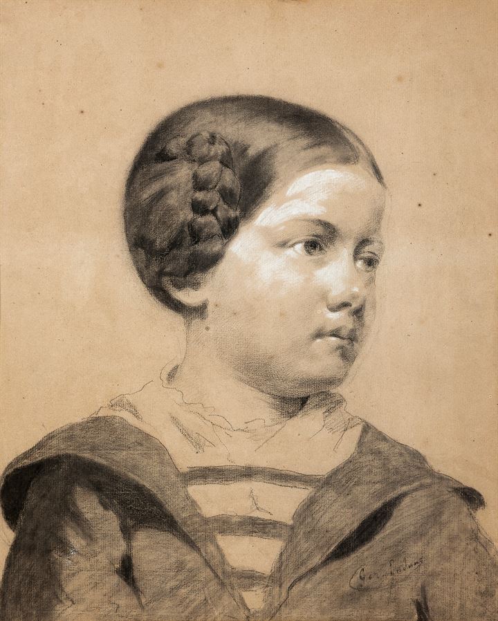 INDUNO GEROLAMO Milano 1825 - 1890 "Figura di bimba" 35x43 matita e biacca su...