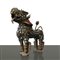 Leone buddista in ottone decorato con corallo e turchese, 1900 H cm 9.5x9 Statuina di un leone buddista in ottone, decorato con corallo e turchese. Testa mobile. Mancano alcune pietre.Statuina di un leone buddista in ottone, decorato con corallo e turchese. Testa mobile. Mancano alcune pietre.