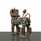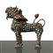 Leone buddista in ottone decorato con corallo e turchese, 1900