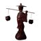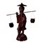 Coppia di statuine orientali in legno di anziano pescatore con cesti pendenti