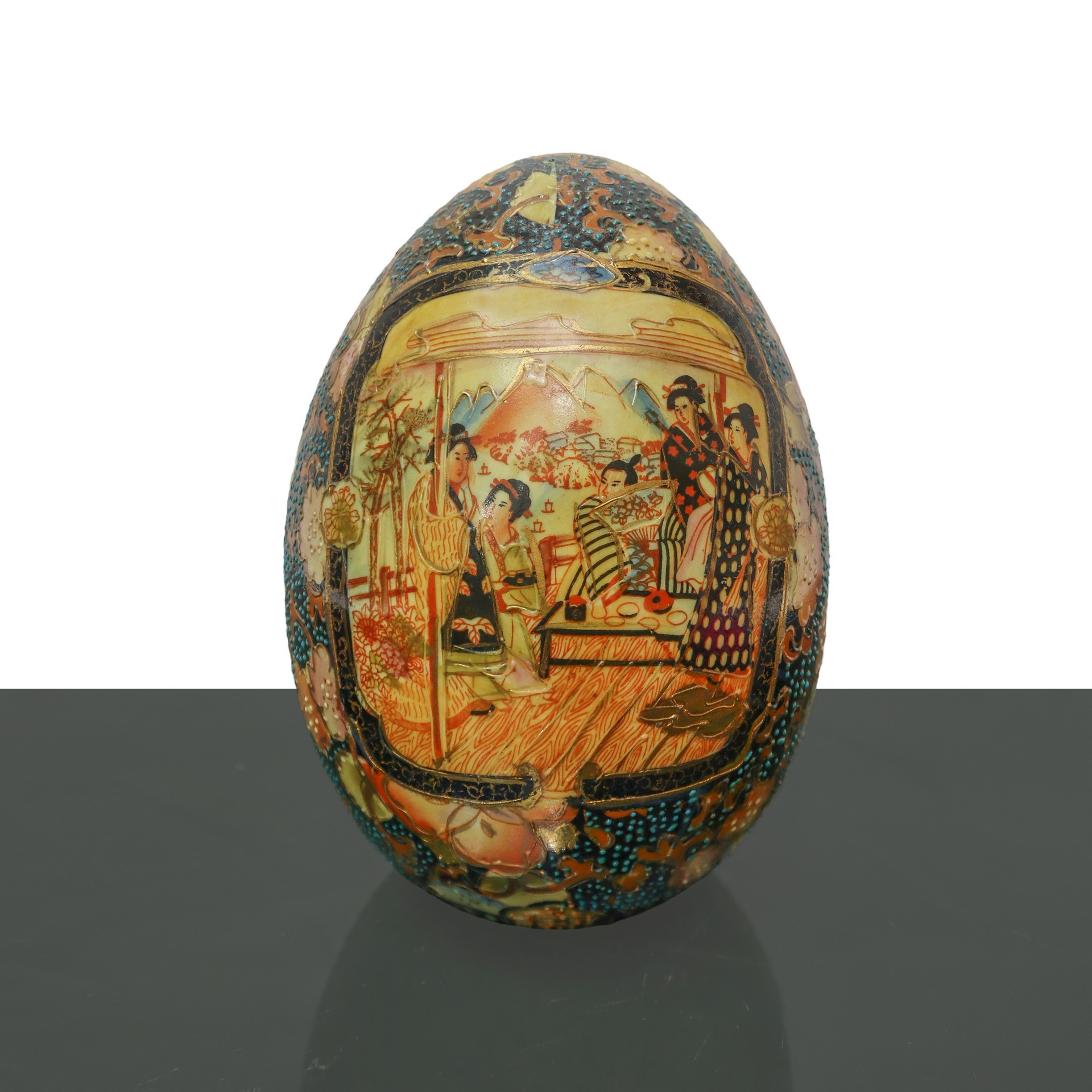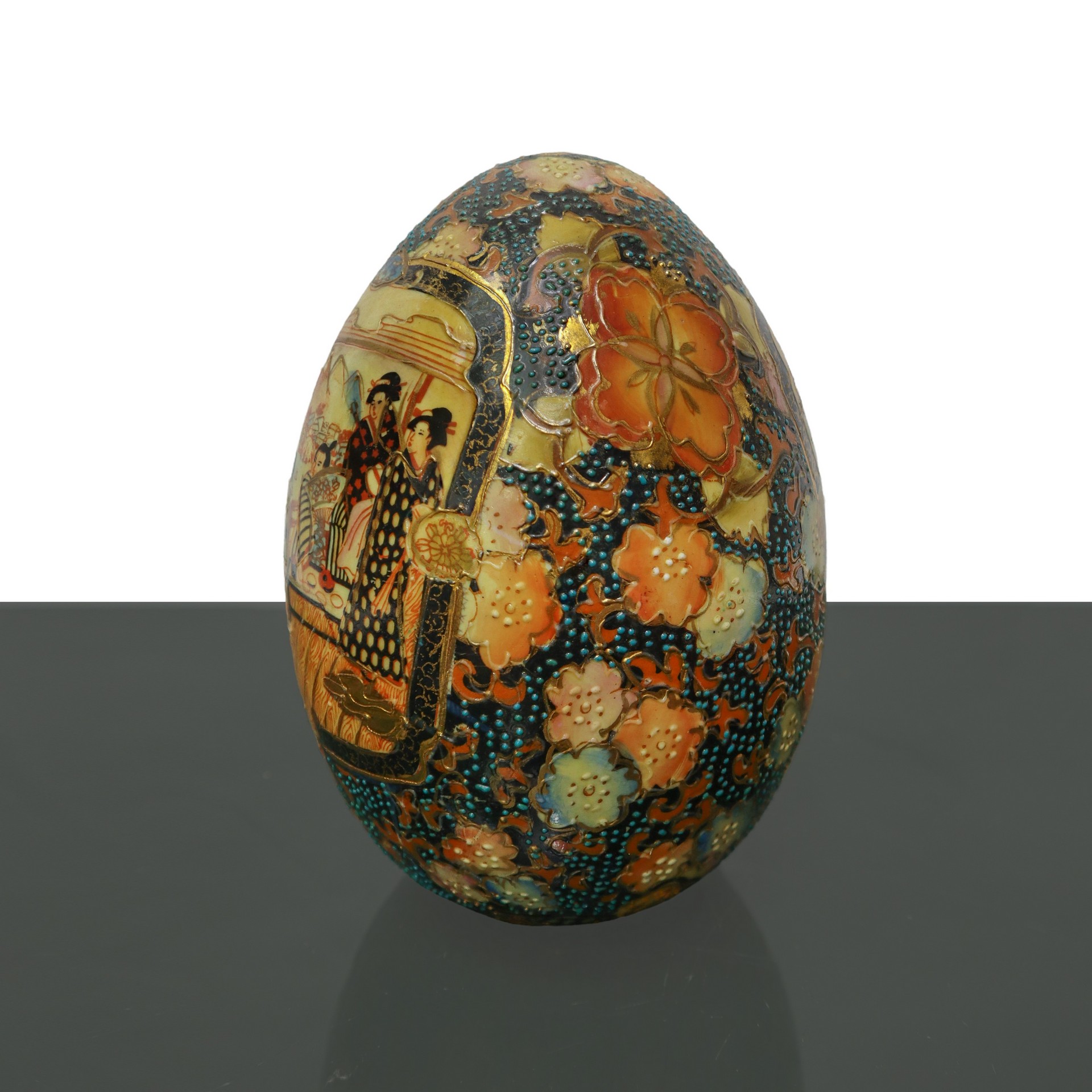 Uovo vintage in porcellana Satsuma dipinta a mano, 20° secolo