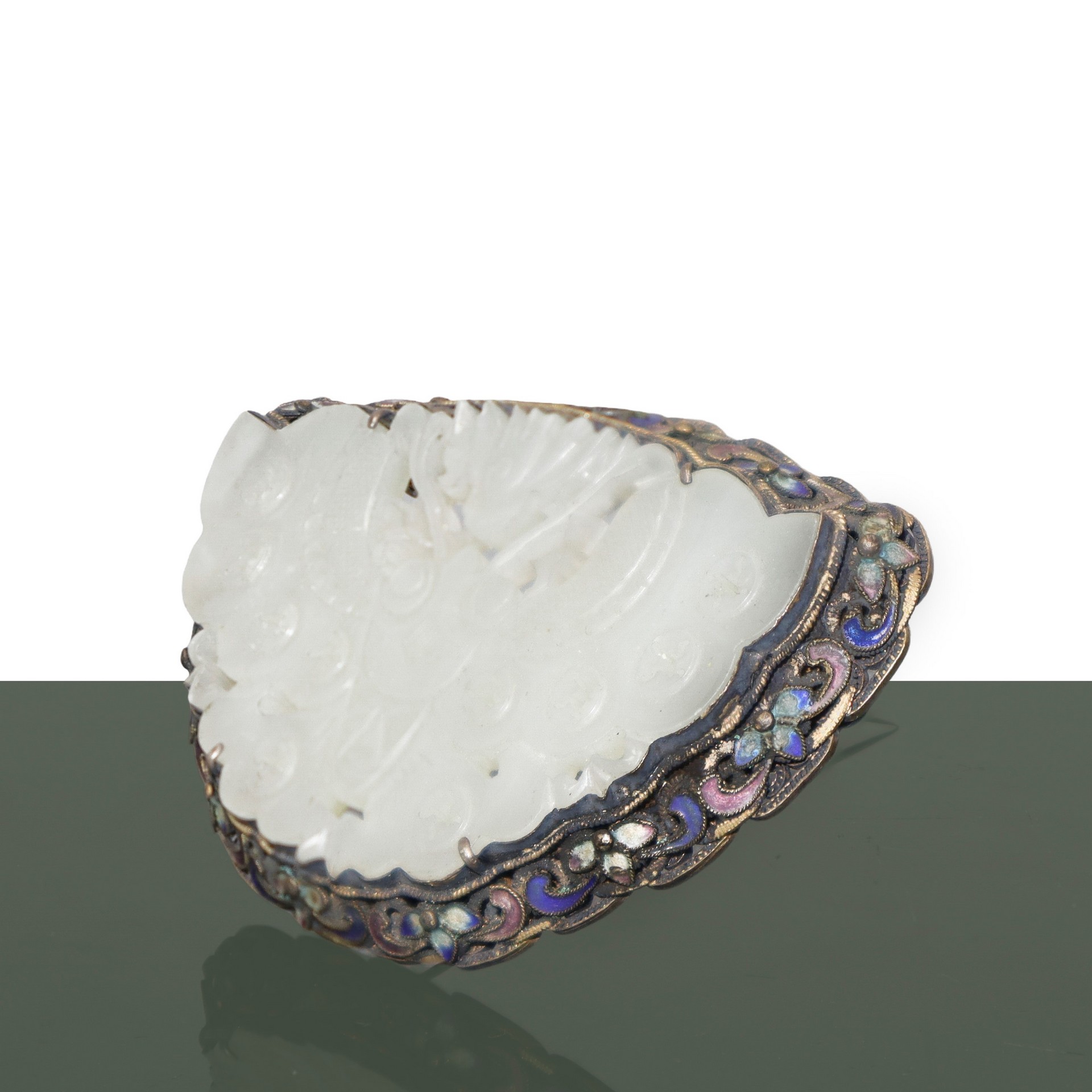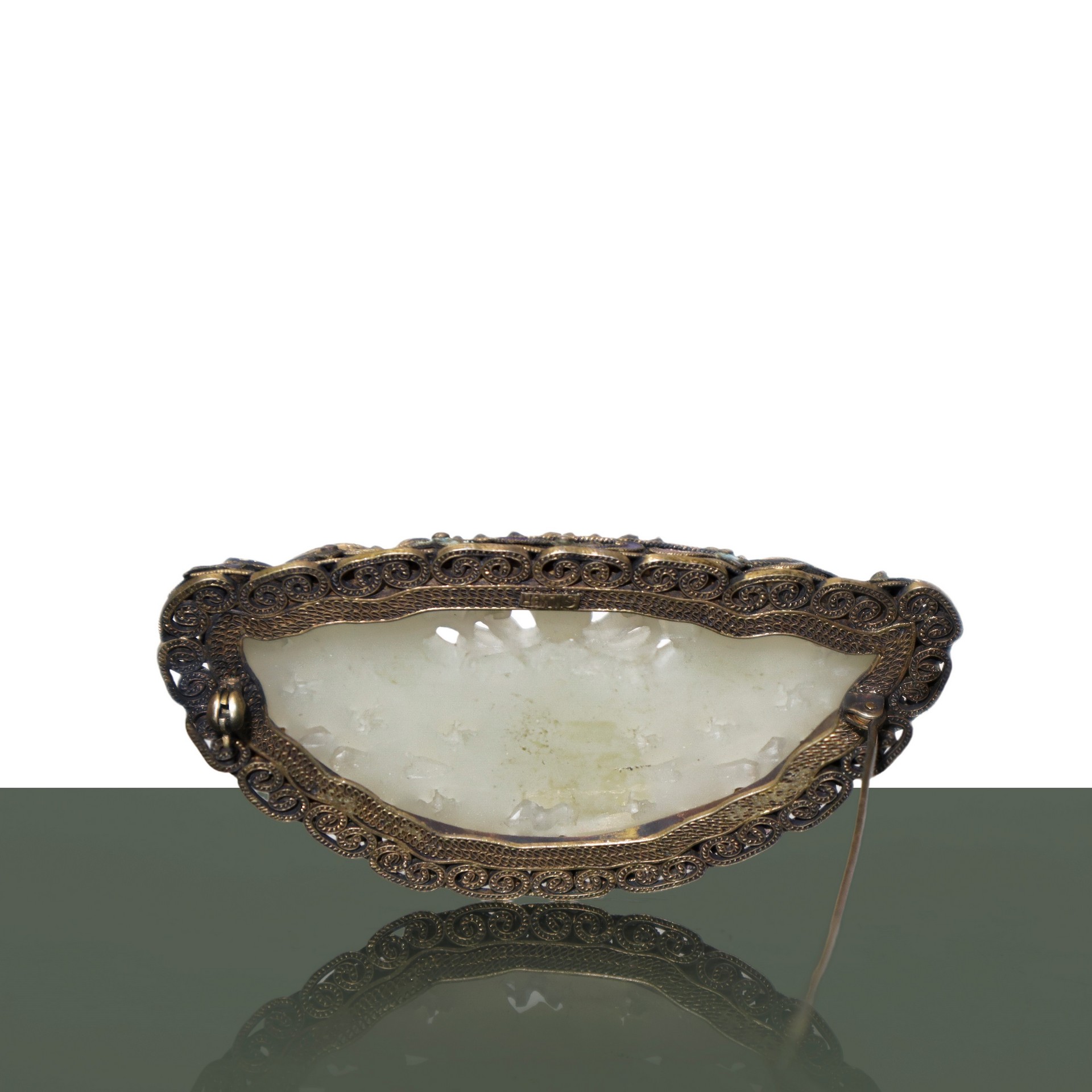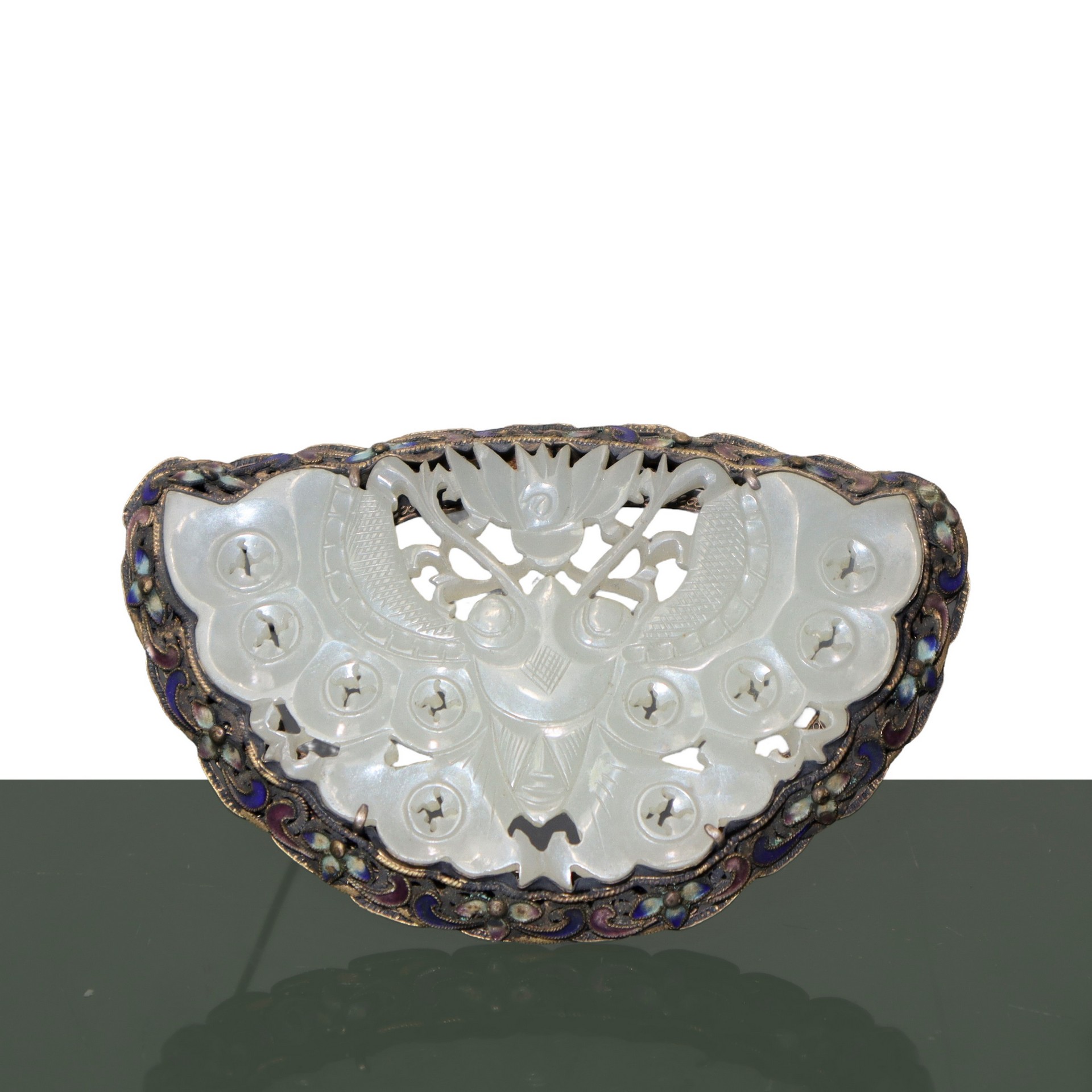 Spilla cinese in argento e giada bianca traforata interamente a mano