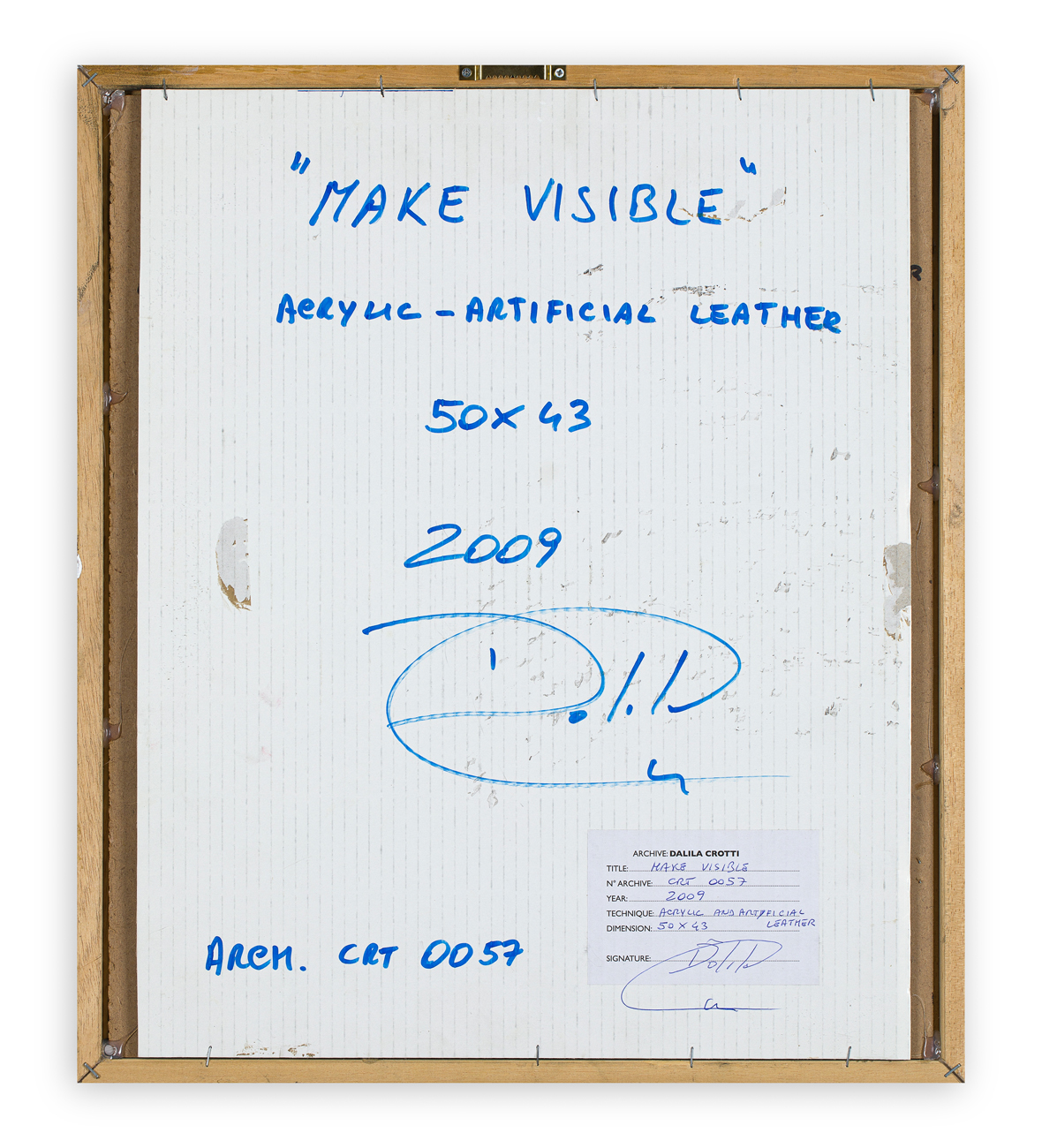 Firma, titolo, datazione, tecnica, misure e numero di archivio al retro