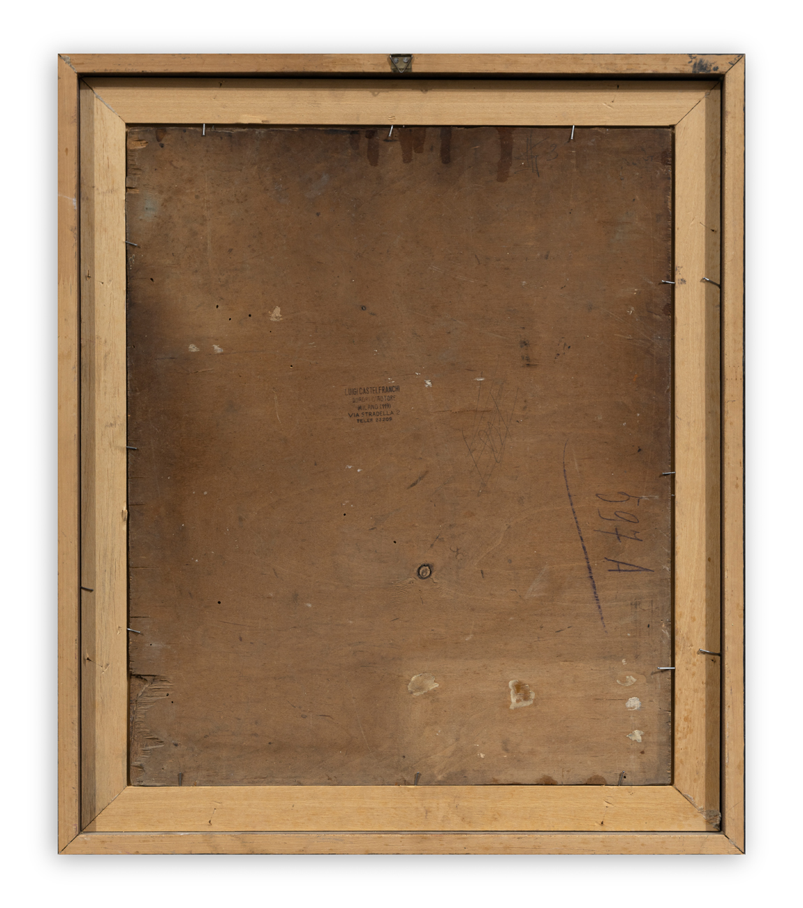 Timbro 'Luigi Castelfranchi Quadri d'Autore - Milano' al retro