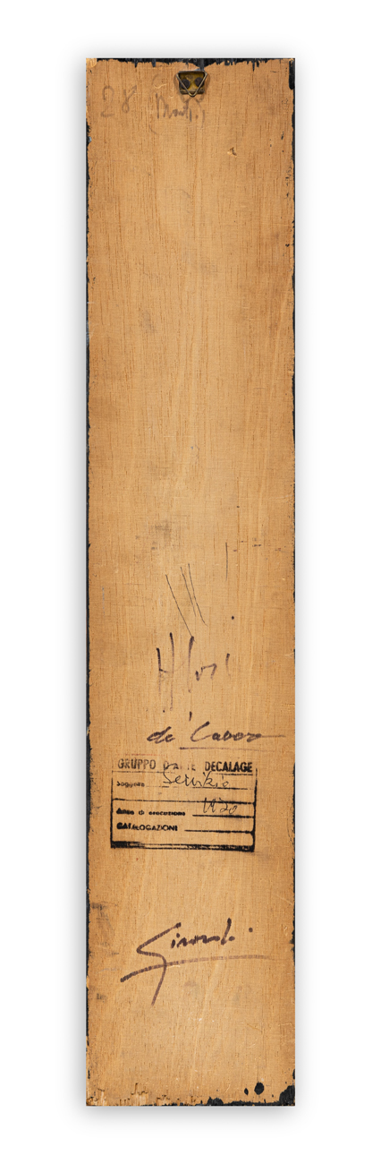 Timbro del Gruppo d'Arte Decalage e firme degli artisti partecipanti (Nardo Girardi, Felix de' Cavero, Attilio Aloisi) al retro