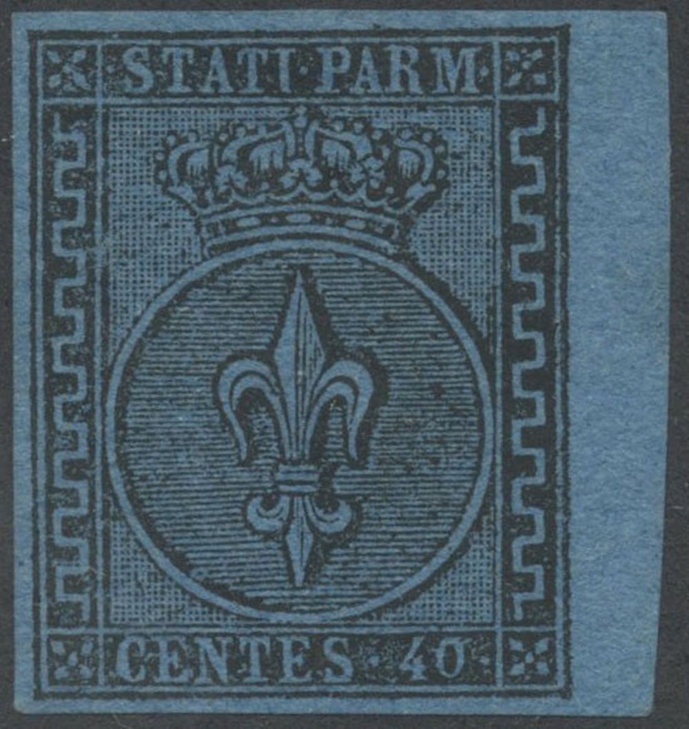 1852 - 40cent. N.5 azzurro nuovo con gomma parziale (Valutato come senza gomma) bordo di foglio a destra. (Lux)