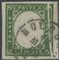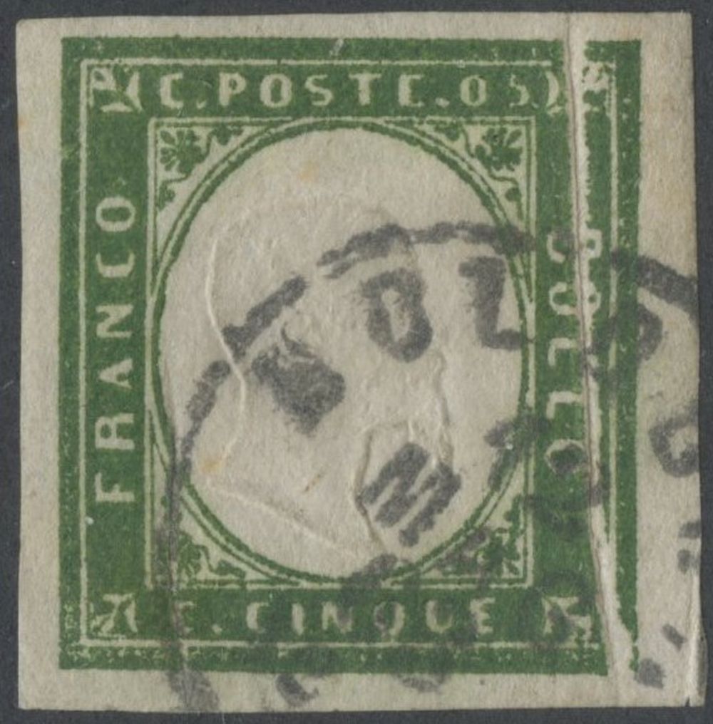 1862 - 5 cent. verde giallastro n.13Da con ''Pli d'accordeon'' usato a Bologna. Assolutamente non comune la varietà usata. (LUX) (Alberto Diena)