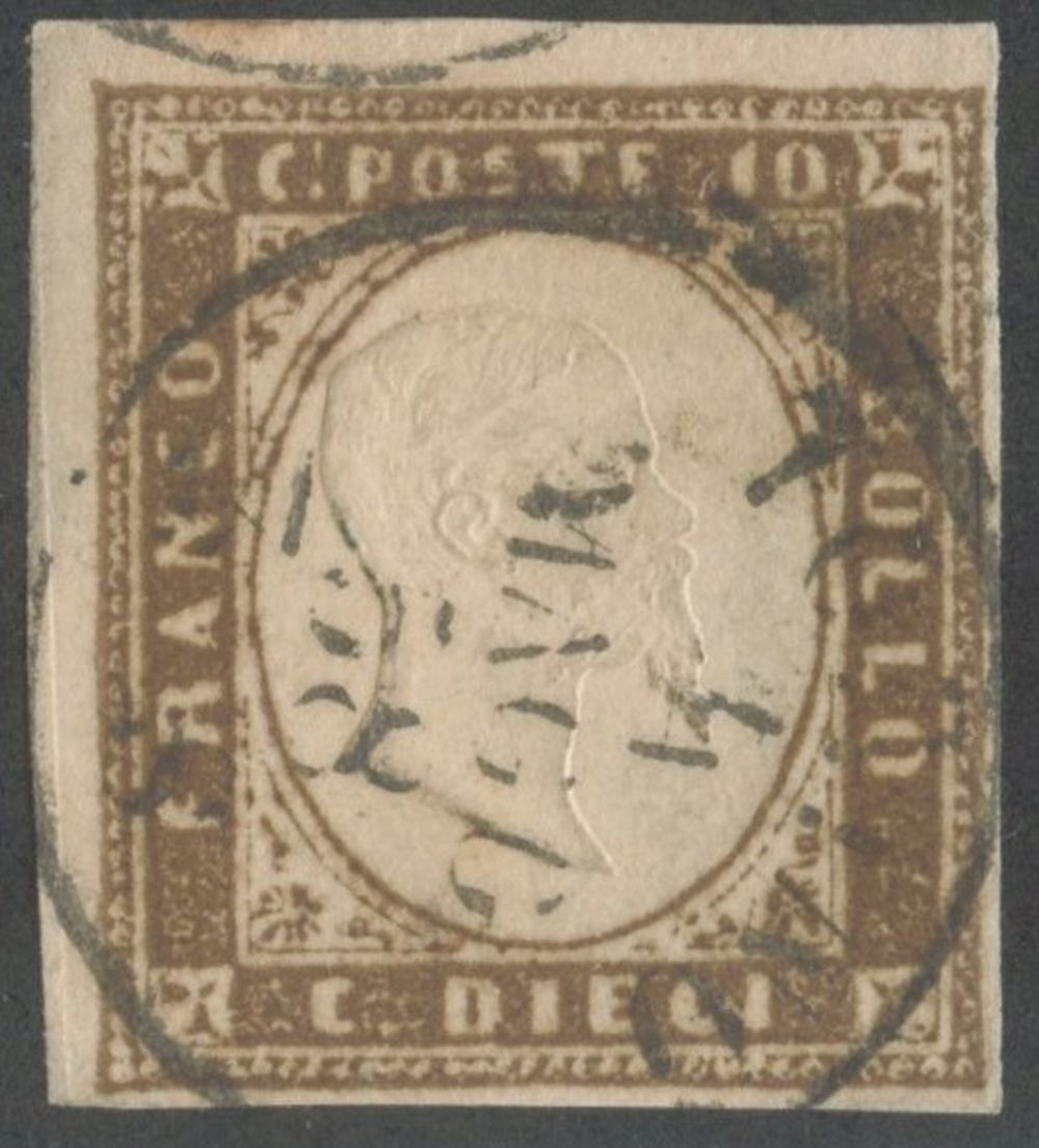1858 - 10 cent. terra d'ombra giallognolo n.14b. (A) (Cardillo)