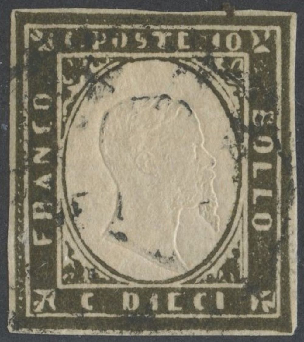 1861 - 10 cent. oliva grigio scurissimo n.14Cb. Impercettibile punto chiaro. (A-) (Ballabio)