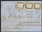 28.02.1862 - Busta da Livorno per Civitavecchia viaggiata ''Via di Mare'' ed affrancata per 30 centesimi tramite tre valori da 10 cent. bruno olivastro n.14Cl. (Tariffa non comune) (A-) (Sassone)