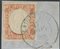 1858 - 40 cent. vermiglio arancio chiaro n.16Ab conservato su piccolo frammento. (A+)