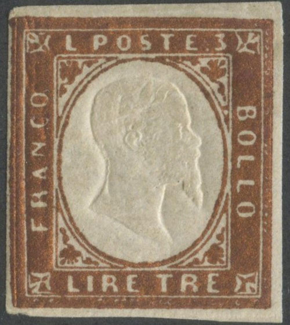 1861 - 3 Lire rame vivo nuovo con gomma, linguellato. (A) (Ballabio, Auteri)