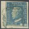 1859 - 2gr. I tav. azzurro annullato tramite un annullo a ''ferro di cavallo'' in azzurro e conservato su piccolo frammento. (A) (Emilio Diena)