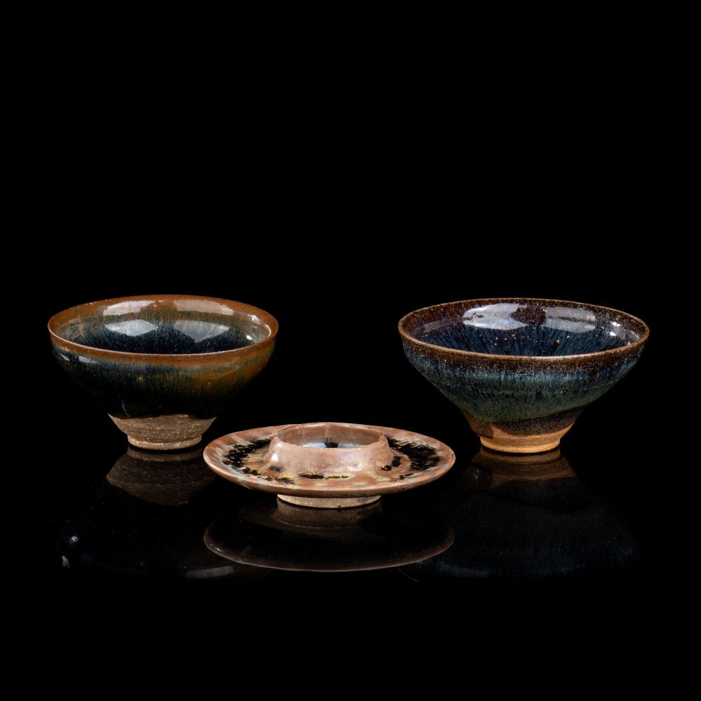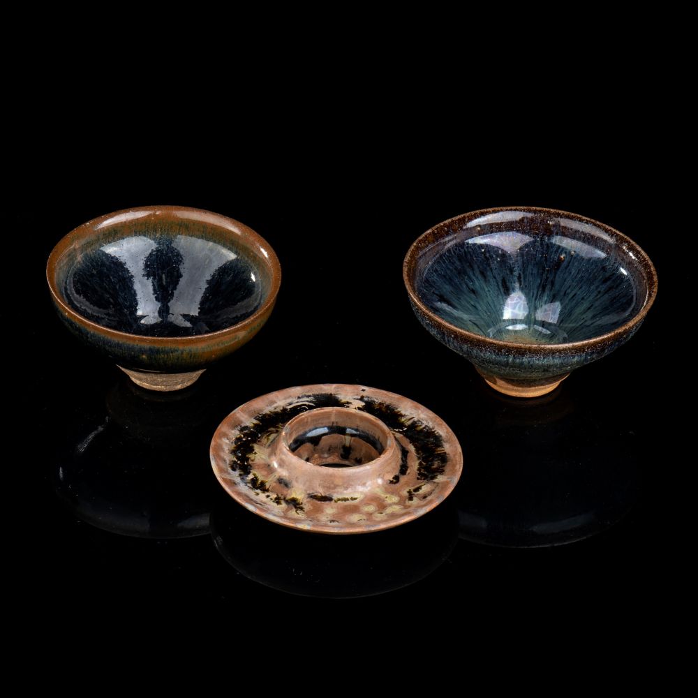 Lotto 11 | DUE CIOTOLE IN CERAMICA SMALTATA, UNA CON BASE 5,5 x 12 cm