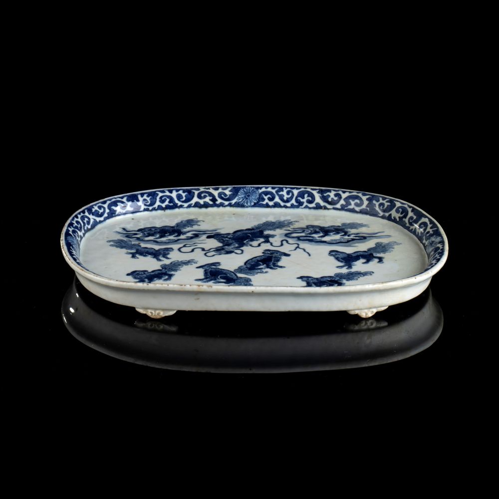 VASSOIO IN PORCELLANA 'BIANCO E BLU'