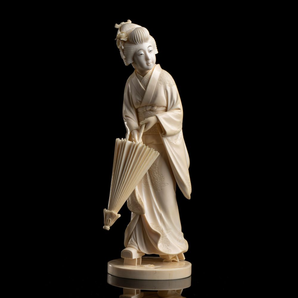 OKIMONO IN AVORIO CON GEISHA