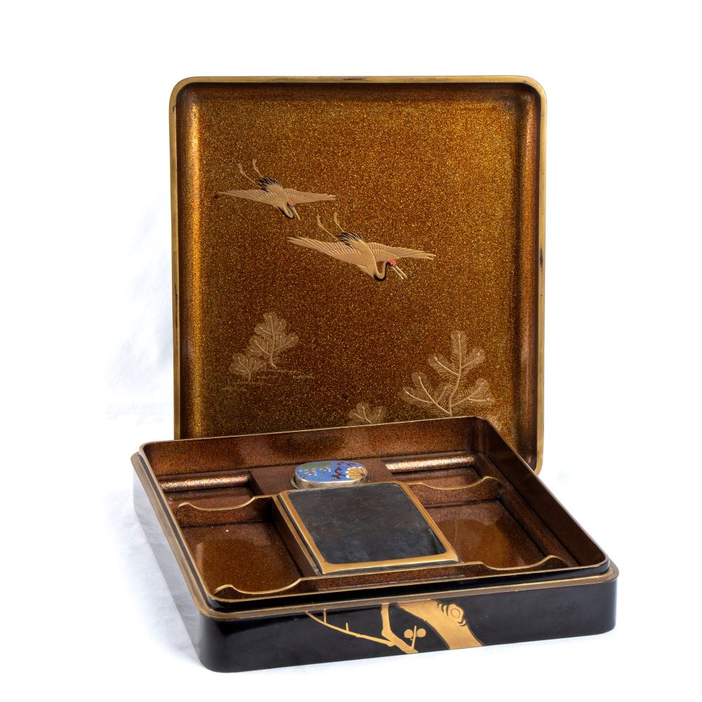 COMPLETO DA SCRITTURA IN LEGNO LACCATO E DORATO, SUZURIBAKO