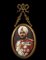 Il nobile raffigurato a mezzo busto, vestito di uniforme militare con numerose onorificenze e turbante sul capo, La placchetta ovale racchiusa entro elegante montatura in bronzo dorato con vetro protettivo.