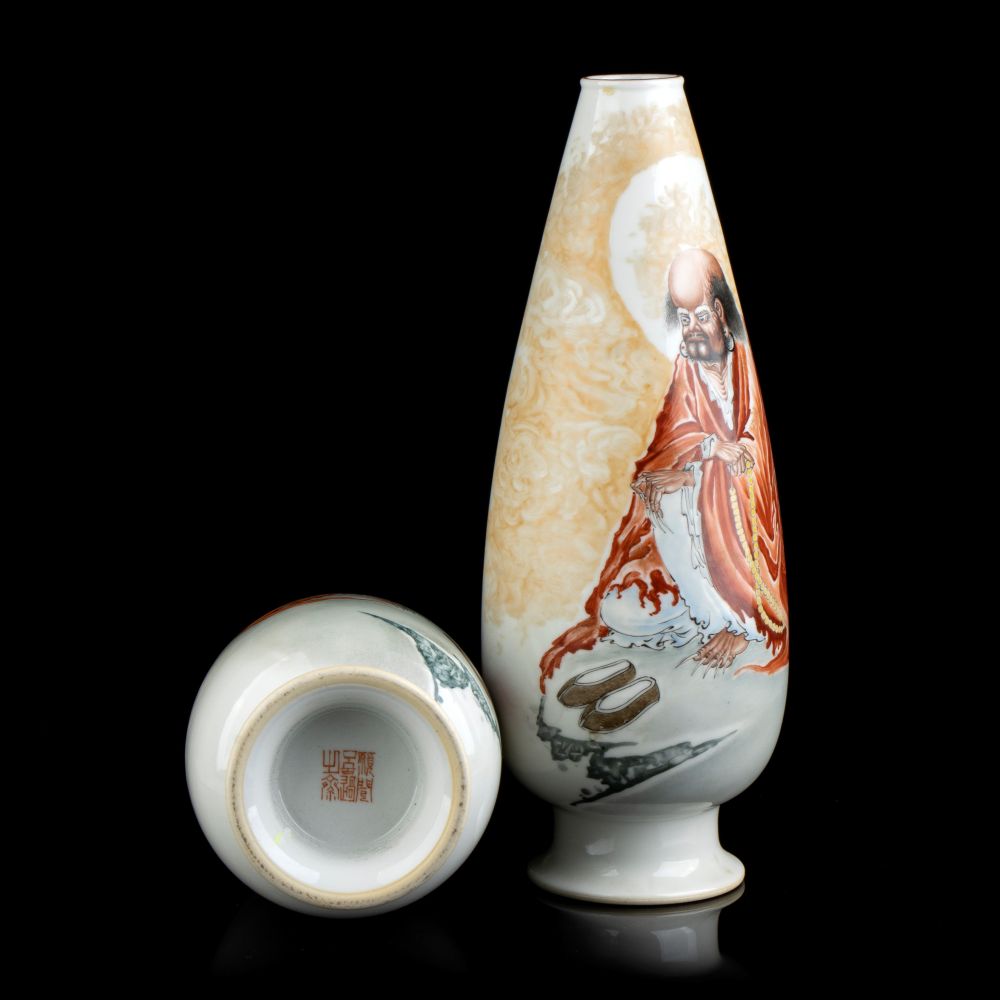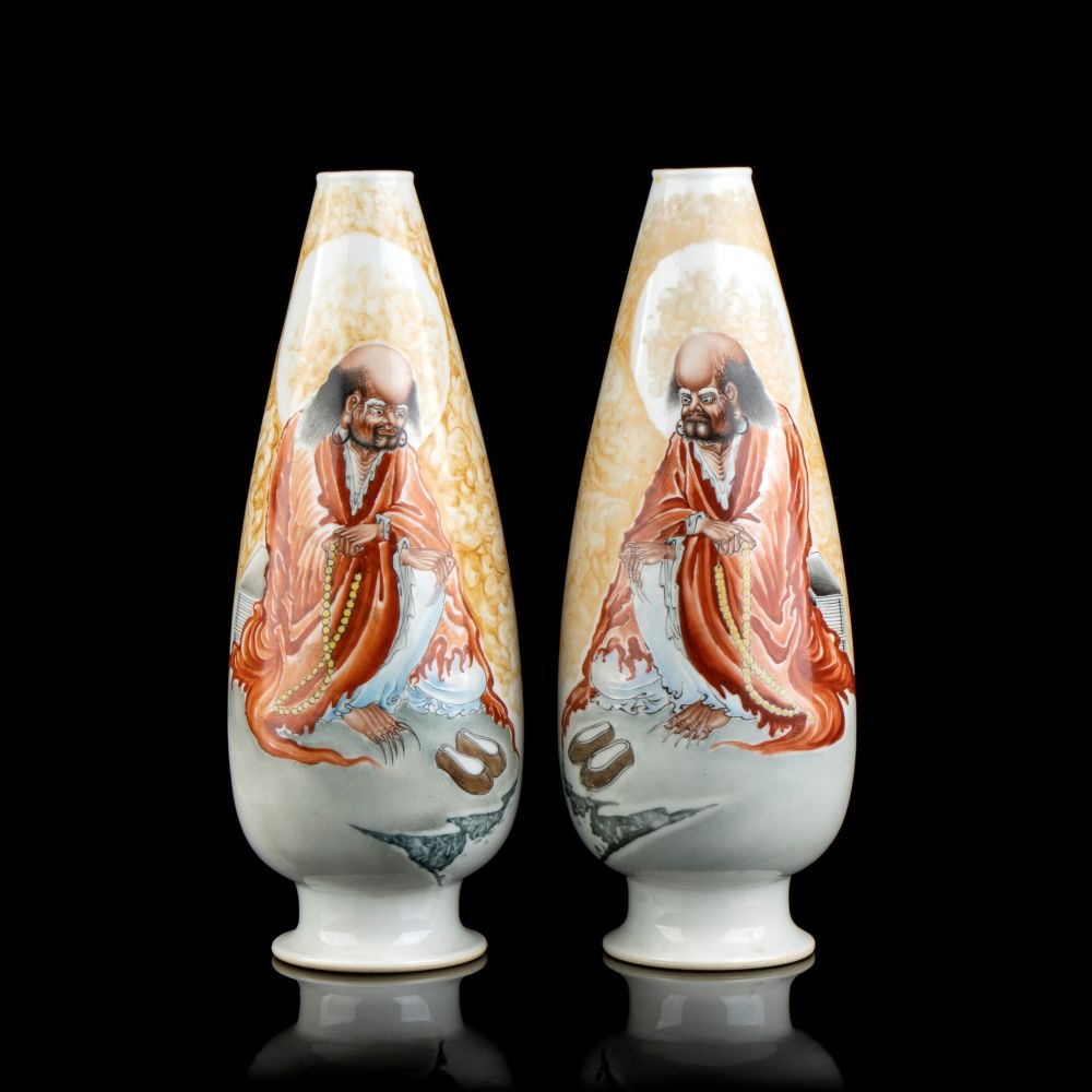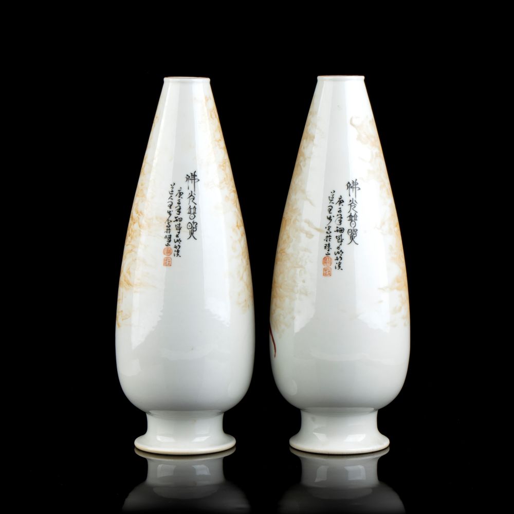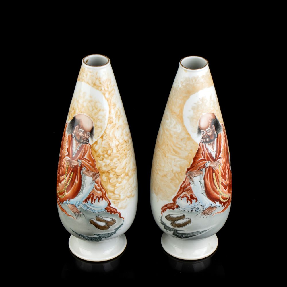 COPPIA DI VASI IN PORCELLANA CON DECORO A SMALTI POLICROMI